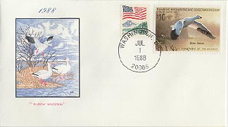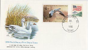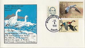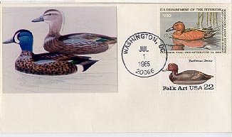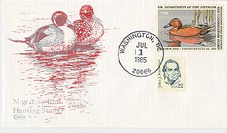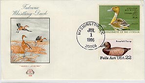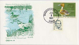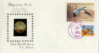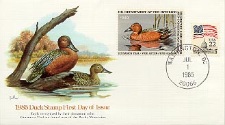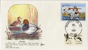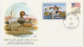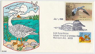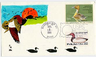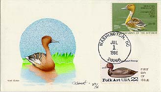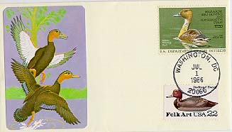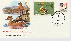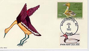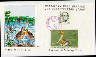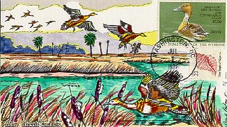 We have over 200 different cachets of Federal Duck stamp First Day Covers. A large quantity of these are handpainted. All the covers listed on this page are for sale at one low price, regardless of normal retail (which can be up to $85.00). Click on the listing to see the cover.